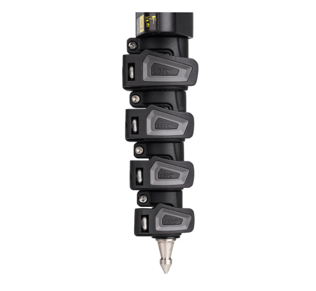 - Надежность – для крепления геодезического приемника на изделии служит металлический винтовой соединитель с 5/8-дюймовой резьбой, отличающийся высокой износостойкостью; нижняя секция защищена от истирания стальным наконечником.