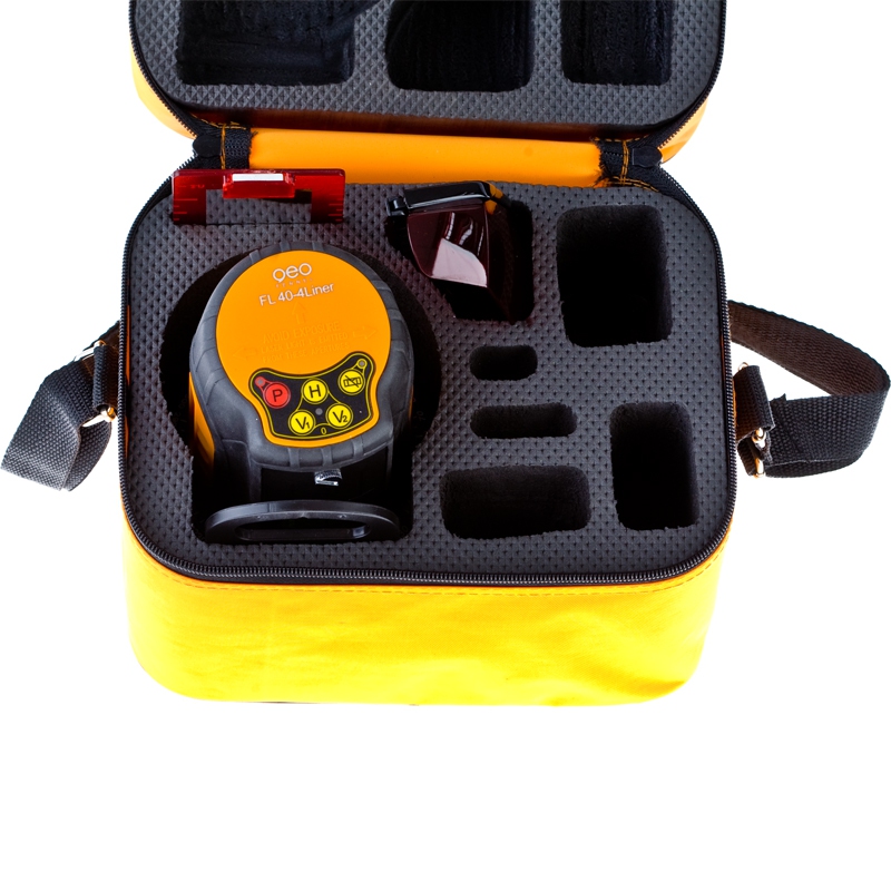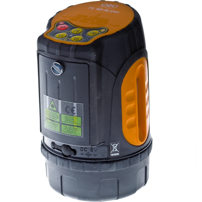 В отличии от лазерного линейного нивелира FL 40 3 Liner ( и HP), лазерный нивелир FL 40 4-Liner имеет более функциональное управление, добавляются функции отключения лазерных плоскостей, режим перехода в ручное управление. Подставка прибора как и в построителе FL 40 3 Liner HP имеет гнездо для установки его на штатив и гнезда для подвешивания прибора на вертикальные поверхности (стены, балки и т.д.) на специальном стакане.